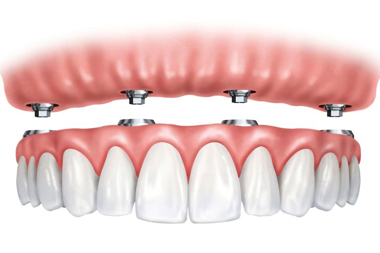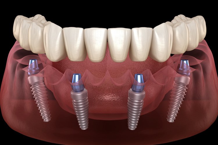 Der Begriff All-on-4 bezieht sich darauf, dass "alle" Zähne "auf vier" Zahnimplantaten getragen werden. Es handelt sich um ein chirurgisches und technisches prothetisches Verfahren zur vollständigen Rehabilitation des zahnlosen Patienten oder für Patienten mit stark abgebrochenen Zähnen, kariösen Zähnen oder beeinträchtigten Zähnen aufgrund von Zahnfleischkrankheiten. Es besteht aus der Rehabilitation des zahnlosen oder bezahnten Ober- und/oder Unterkiefers mit festsitzendem Zahnersatz durch das Setzen von vier Implantaten im vorderen Oberkiefer, wo die Knochendichte höher ist. Die vier Implantate tragen eine festsitzende Prothese mit 10 bis 14 Zähnen, die sofort, typischerweise innerhalb von 24 Stunden nach dem Eingriff, eingesetzt wird.